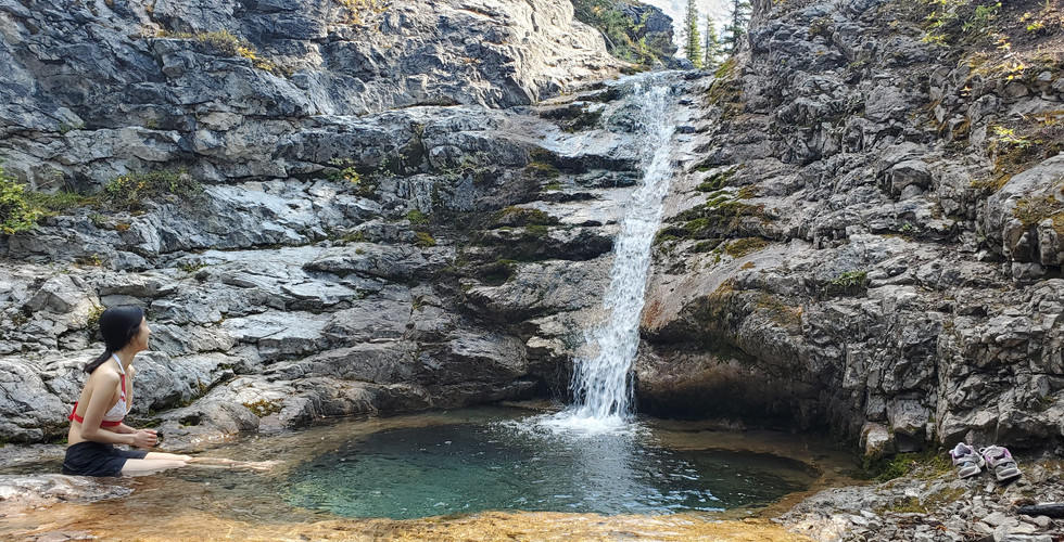 After stumbling upon the picture of this waterfall online, I knew I had to go see it for myself in person. An of course I could not resist taking a last dip of the summer and let me tell you, it was ice cold. Highly recommended hike, but the drive-in on the unpaved highway was too bouncy. Spray Lake nearby is a must stop by, reminds me of the sea.